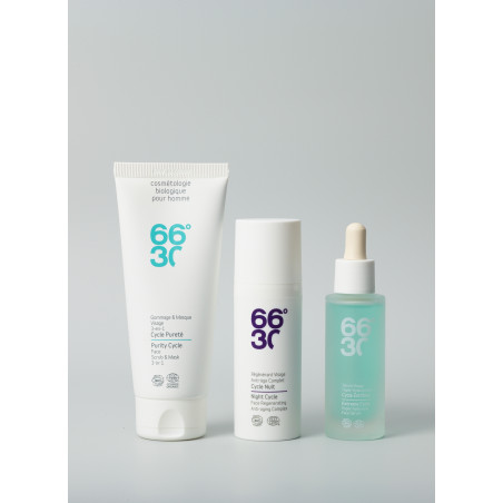 2. Purify your skin by applying a homogeneous layer of Scrub and 3-in-1 Mask and exfoliate gently,